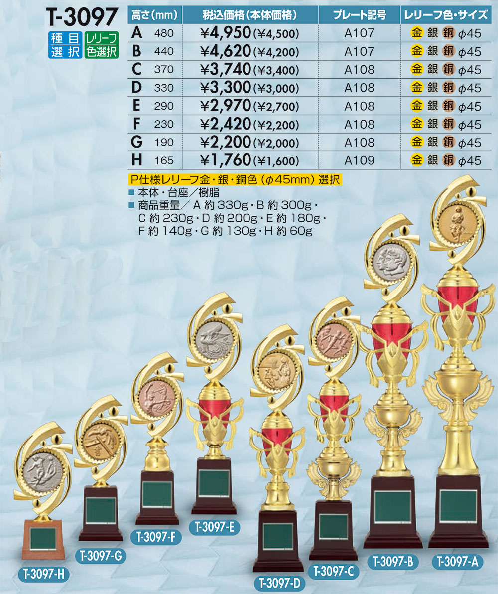 本体・台座/樹脂製レリーフ/樹脂製・直径45mmGとHタイプのみリボンなし