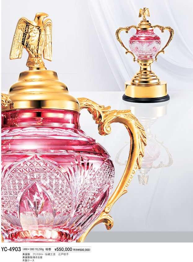 本体/真鍮製・クリスタル(江戸切子)台座/真鍮製総巻き台木製ケース・リング彫刻受注生産のため納期要相談(最長4ヶ月)