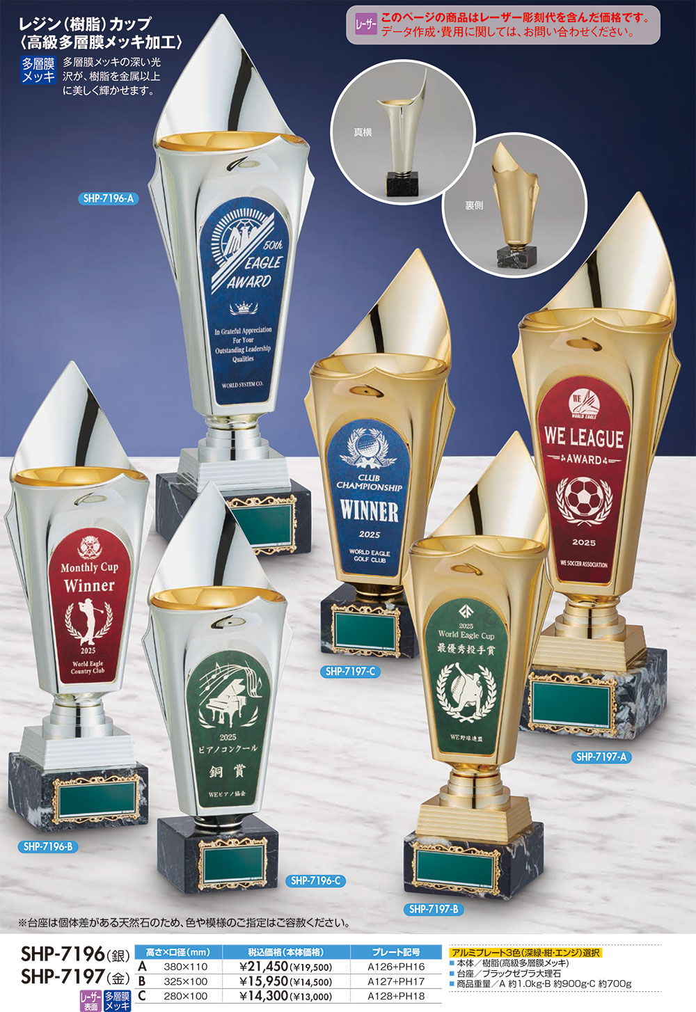 本体/樹脂製(高級多層膜メッキ)台座/ブラックゼブラ大理石レリーフ/アルミ染色加工オリジナルレーザーマーク付完全データ要・納期約2週間
