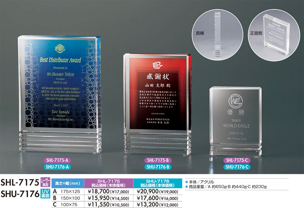 本体/アクリル製レーザー彫刻・納期約10日間UVカラー印刷・納期約15日間レーザー彫刻の場合アクリルは透明のみ