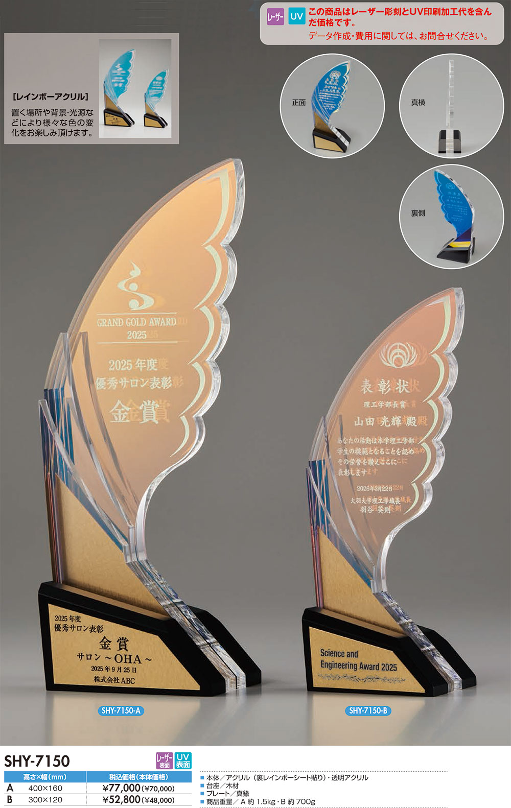 アクリル製 表彰楯(品番:SHY-7150)