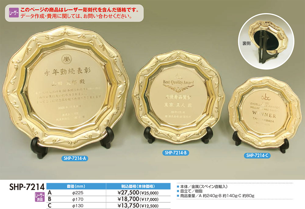 本体/金属製・皿立てプラスチック製レーザー彫刻・納期約10日間
