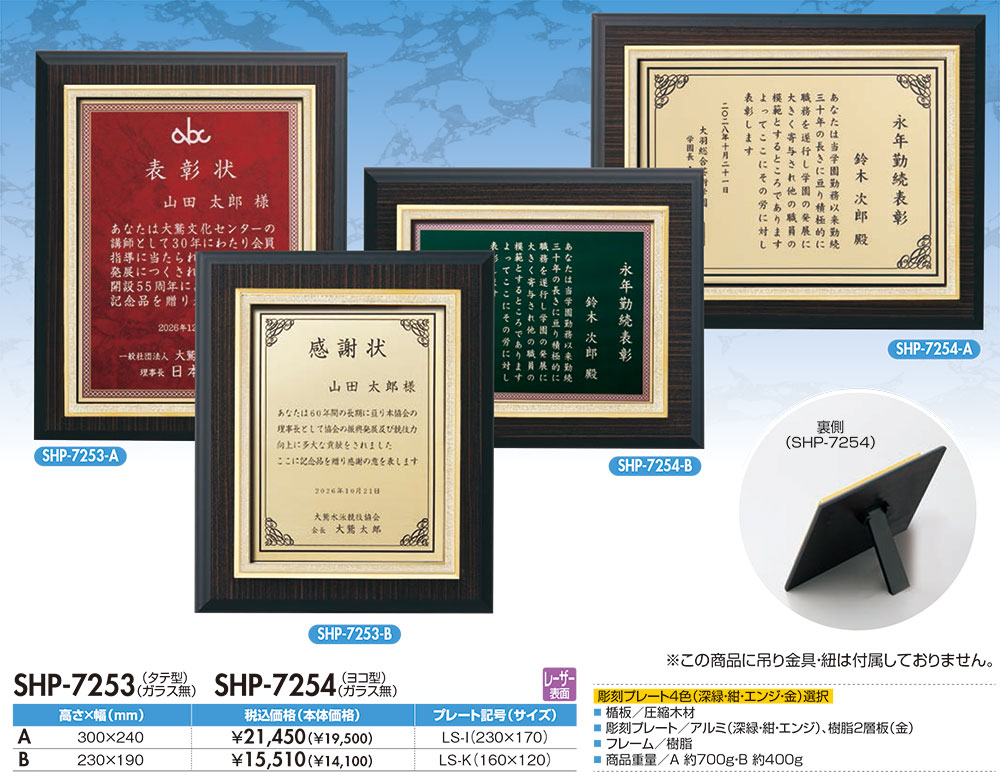 金属プレート 表彰楯(品番:SHP-7253)のレビュー