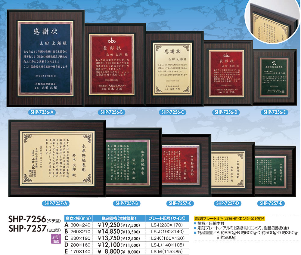 タテ型 縦20cm×横16cm 重量約350g プレート品番: |