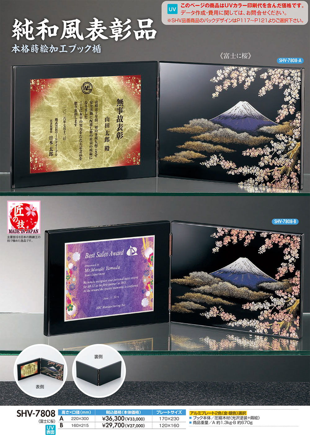 本体/圧縮木材(光沢塗装+蒔絵)アルミプレート(金・銀)UVカラー印刷・納期約15日間
