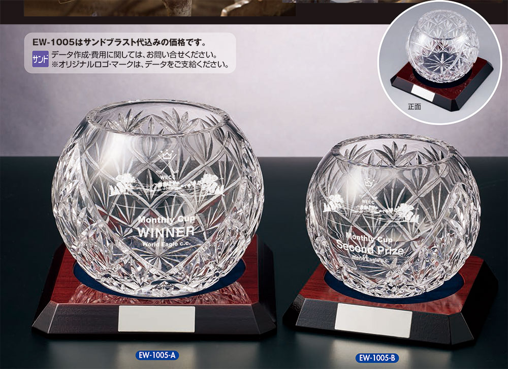 本体/ボヘミアクリスタルガラス製台座/圧縮製・サンドブラスト加工納期約15日間