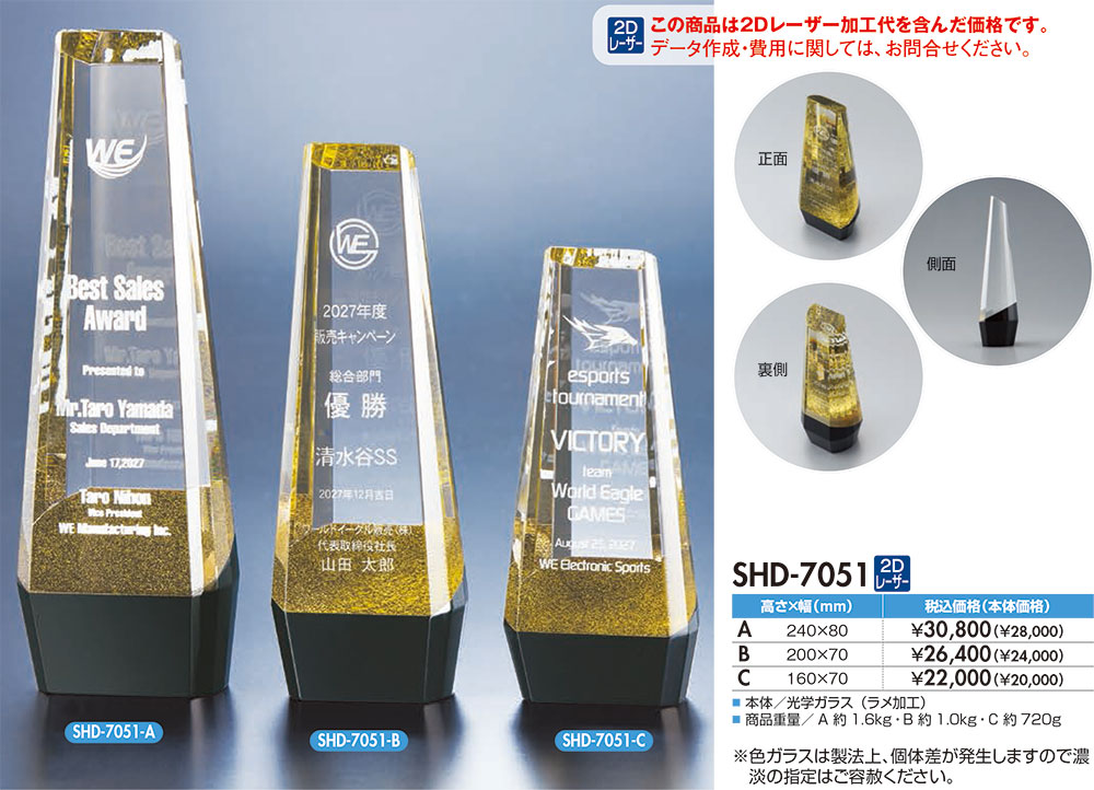 本体/光学ガラス製(ラメ加工)2Dレーザー彫刻(納期約15日間)