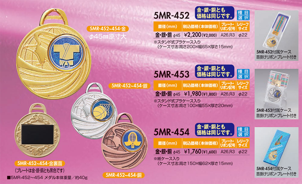 レリーフ直径22mm メダル本体 直径45mm (首掛けリボン付・プラケース入り) プレート品番:A26 |