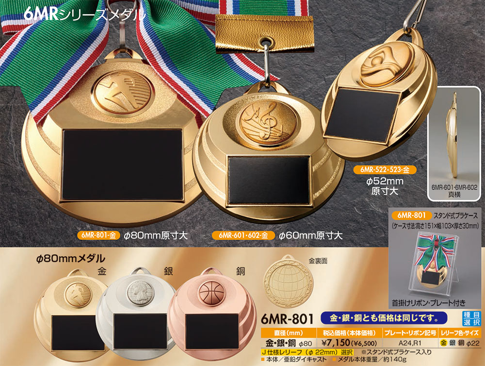レリーフ直径22mm メダル本体 直径80mm (首掛けリボン付・プラケース入り) プレート品番:A24 |