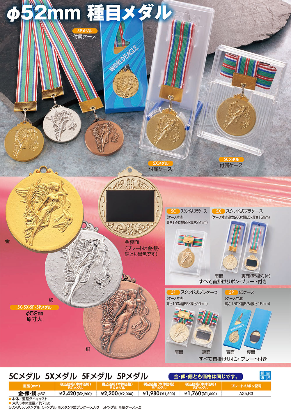 メダル本体 直径52mm (首掛けリボン付・プラケース入り)