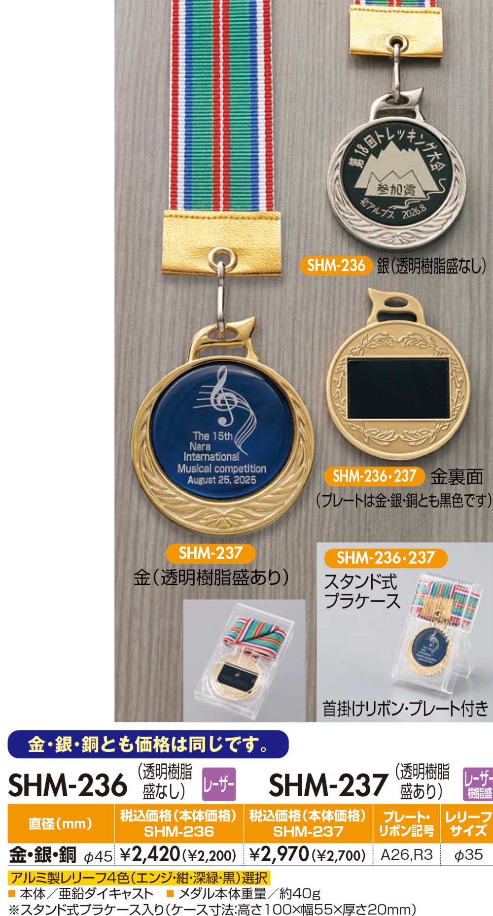 本体/亜鉛ダイキャスト製レリーフ/アルミ製(35mm)レーザー彫刻(納期約15日間)