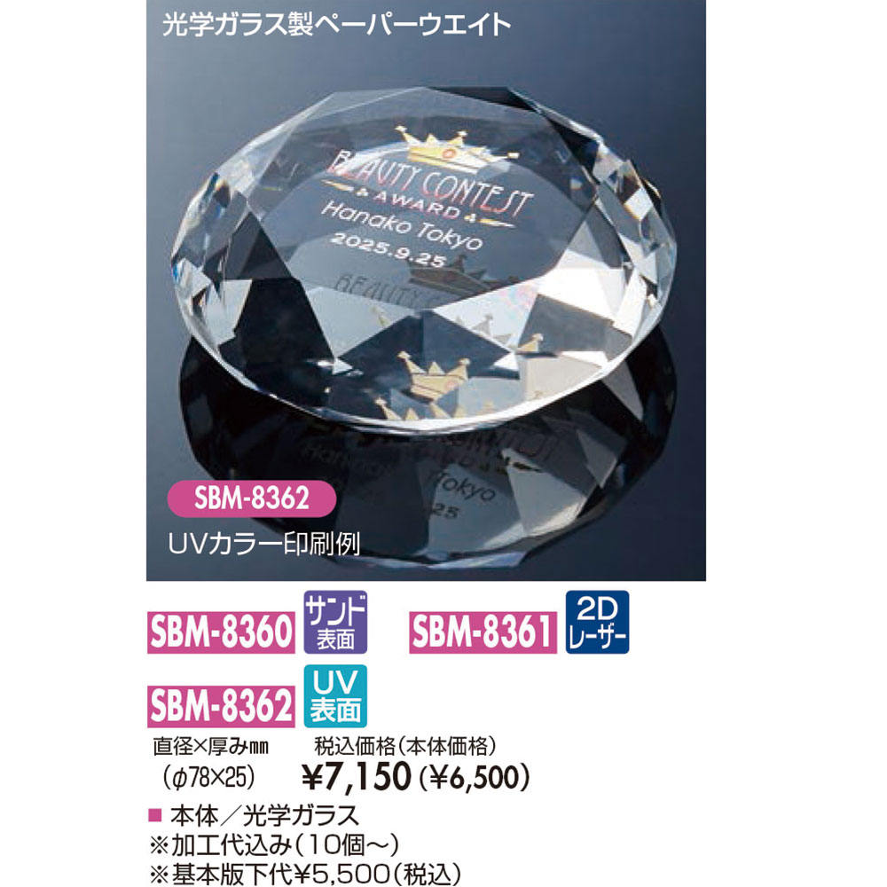 本体/光学ガラス製・レインボーミラー加工光学ガラスペーパーウェイトサンドブラスト加工(納期約10日間)2Dレーザー彫刻(納期約15日間)UV印刷(納期約10日間)