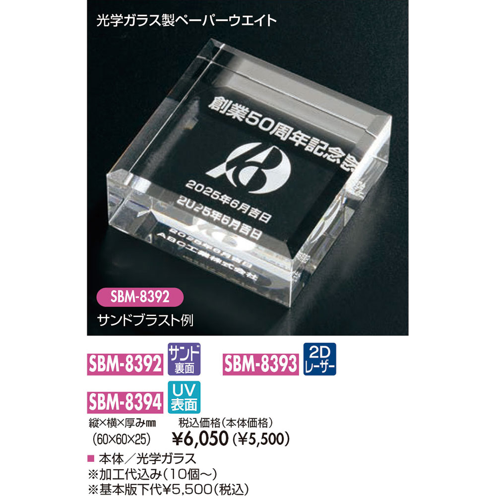 本体/光学ガラス製・光学ガラスペーパーウェイトサンドブラスト加工(納期約10日間)2Dレーザー彫刻(納期約15日間)UV印刷(納期約10日間)