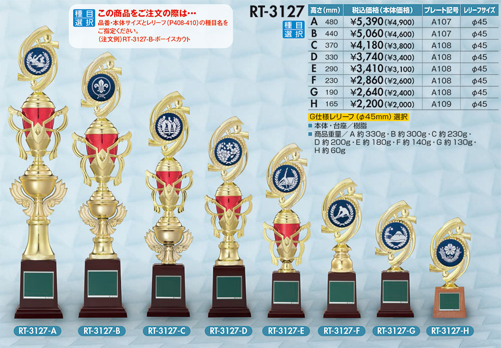本体・台座/樹脂製・レリーフ/金属製レリーフ直径45mmGとHタイプのみリボンなし