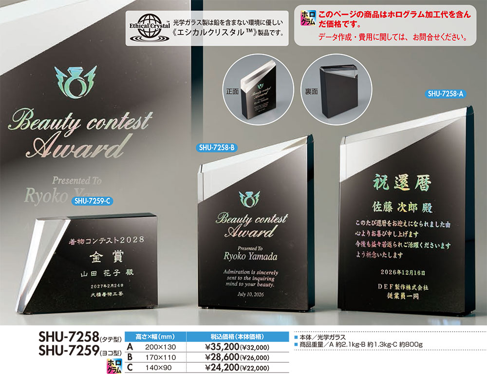 ガラス製 表彰楯 2(品番:SHU-7258)
